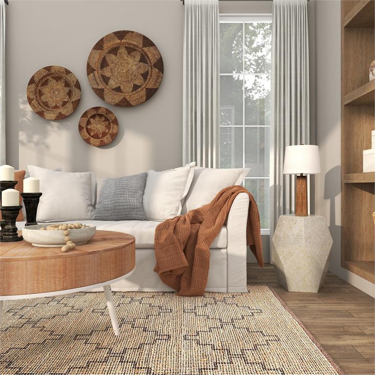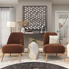 This small yet impactful accent table is perfect as a side table, plant stand, or display pedestal, bringing a sophisticated and organic feel to any space. The hand-applied mother of pearl mosaic enhances the coastal-inspired aesthetic, while its lightweight yet durable structure makes it versatile for various interior styles. To maintain its polished finish, wipe clean with a dry cloth.