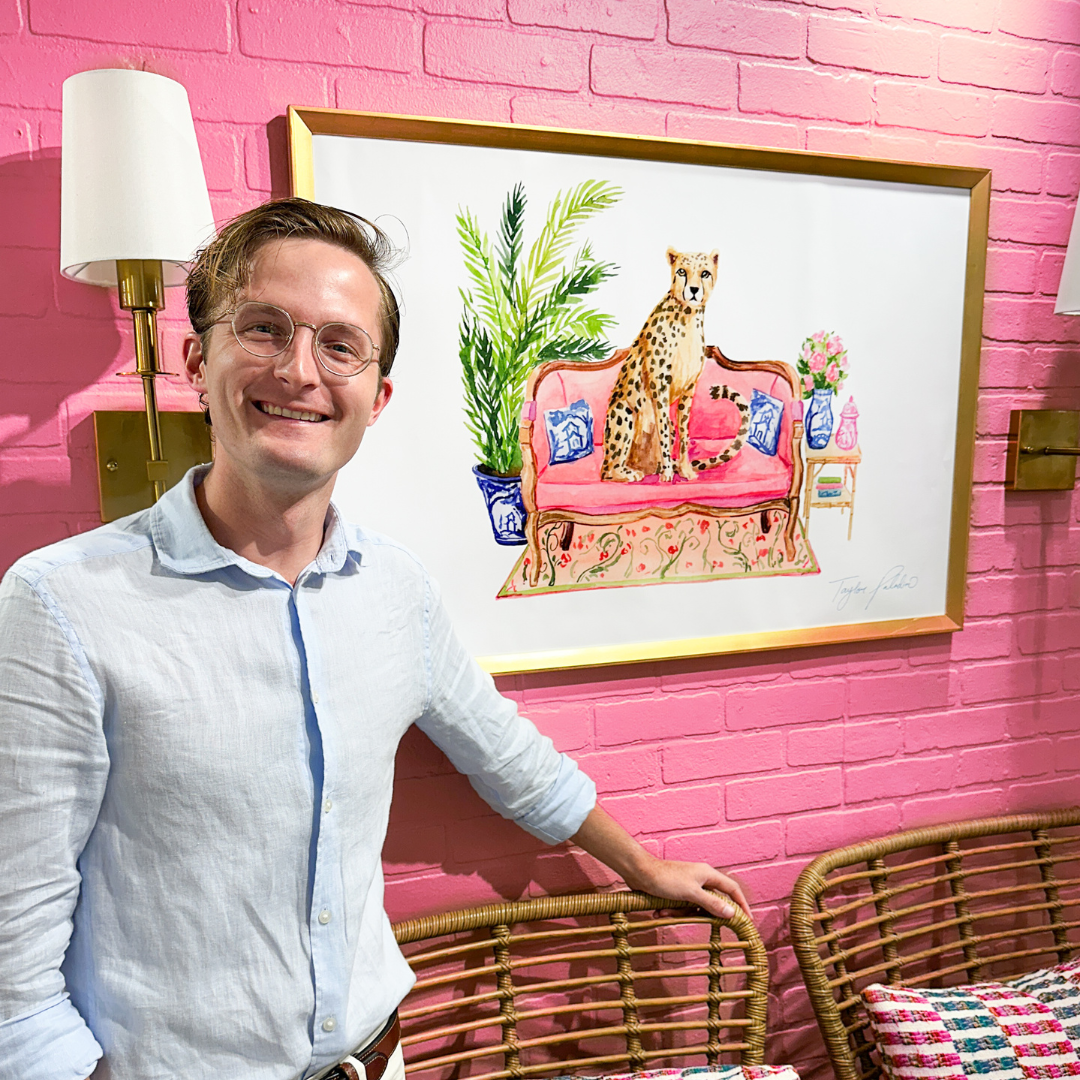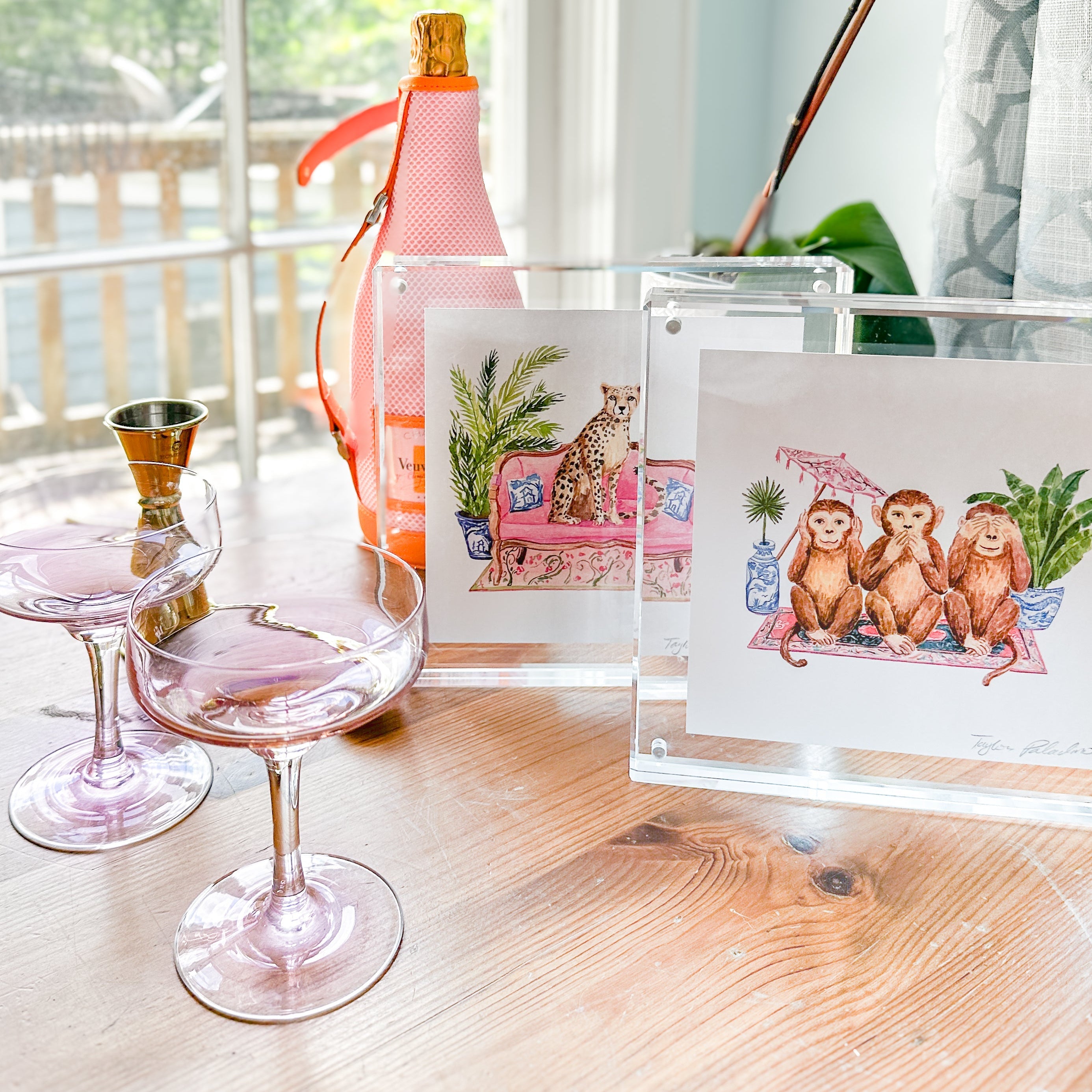 The Fancy Cheetah print from the Parlor Menagerie Collection has become a standout bestseller! This limited edition watercolor artwork, presented in an elegant acrylic frame and personally signed, is an exquisite addition that brings a touch of charm to any space in your home.