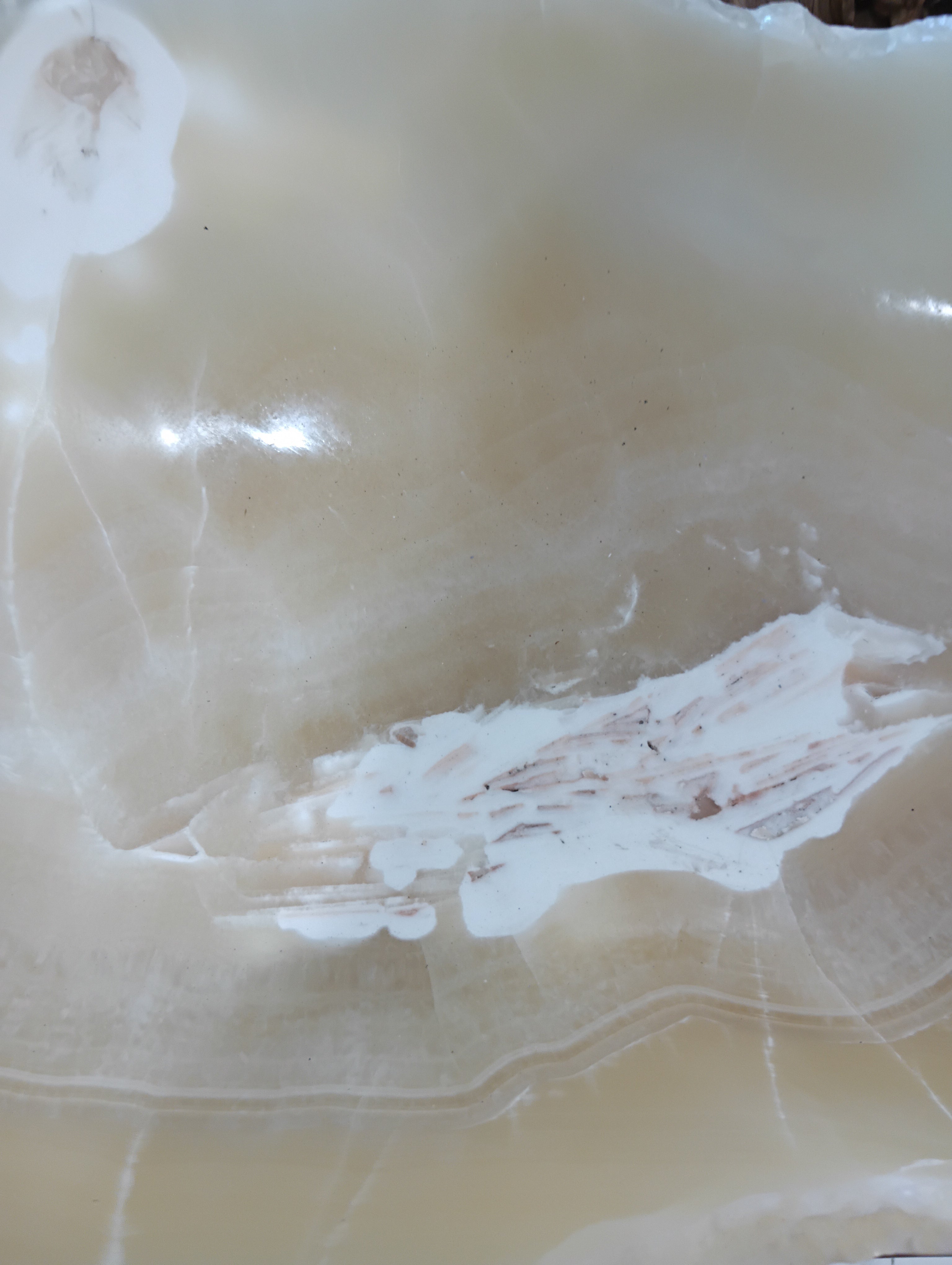 Color: Warm ivory to golden amber with translucent veining
