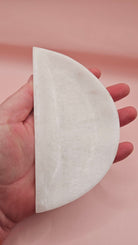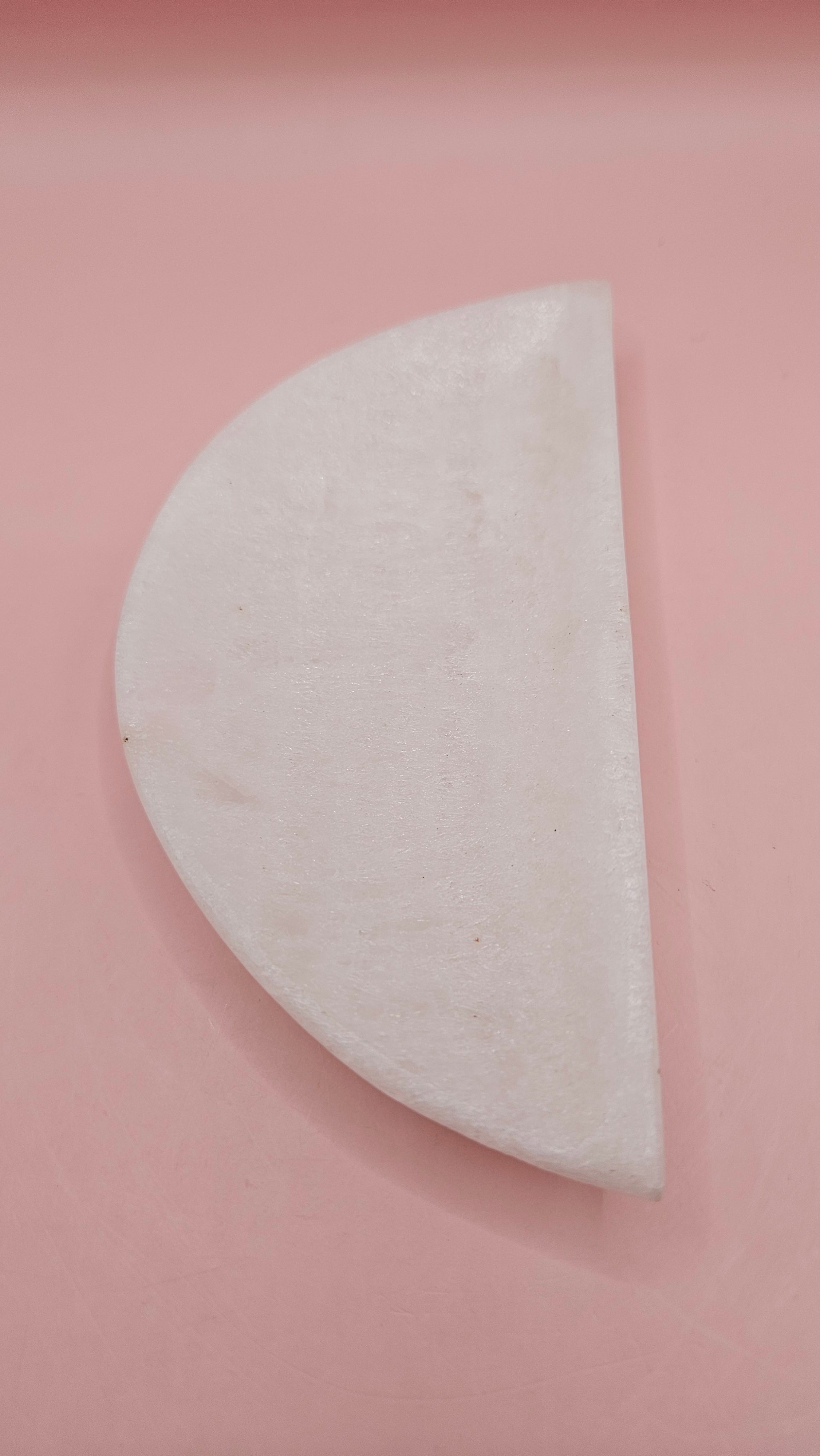 Bring natural elegance to your space with this crescent-shaped shallow bowl carved from smooth white onyx. Designed with a gentle curve and subtle depth, it’s perfect for holding small items like jewelry, crystals, or incense cones. The polished stone glows softly in light, and each piece reveals natural veining and unique coloration.