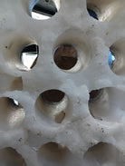 Elevate your wine storage with this sculptural White Onyx Wine Holder, a true statement piece for any coastal, rustic, or modern home. Hand-carved from solid white onyx, this naturally translucent stone features a crystalline texture that beautifully reflects ambient light. Its striking organic shape and sturdy design provide both aesthetic charm and practical function—offering space for up to 15 standard wine bottles.