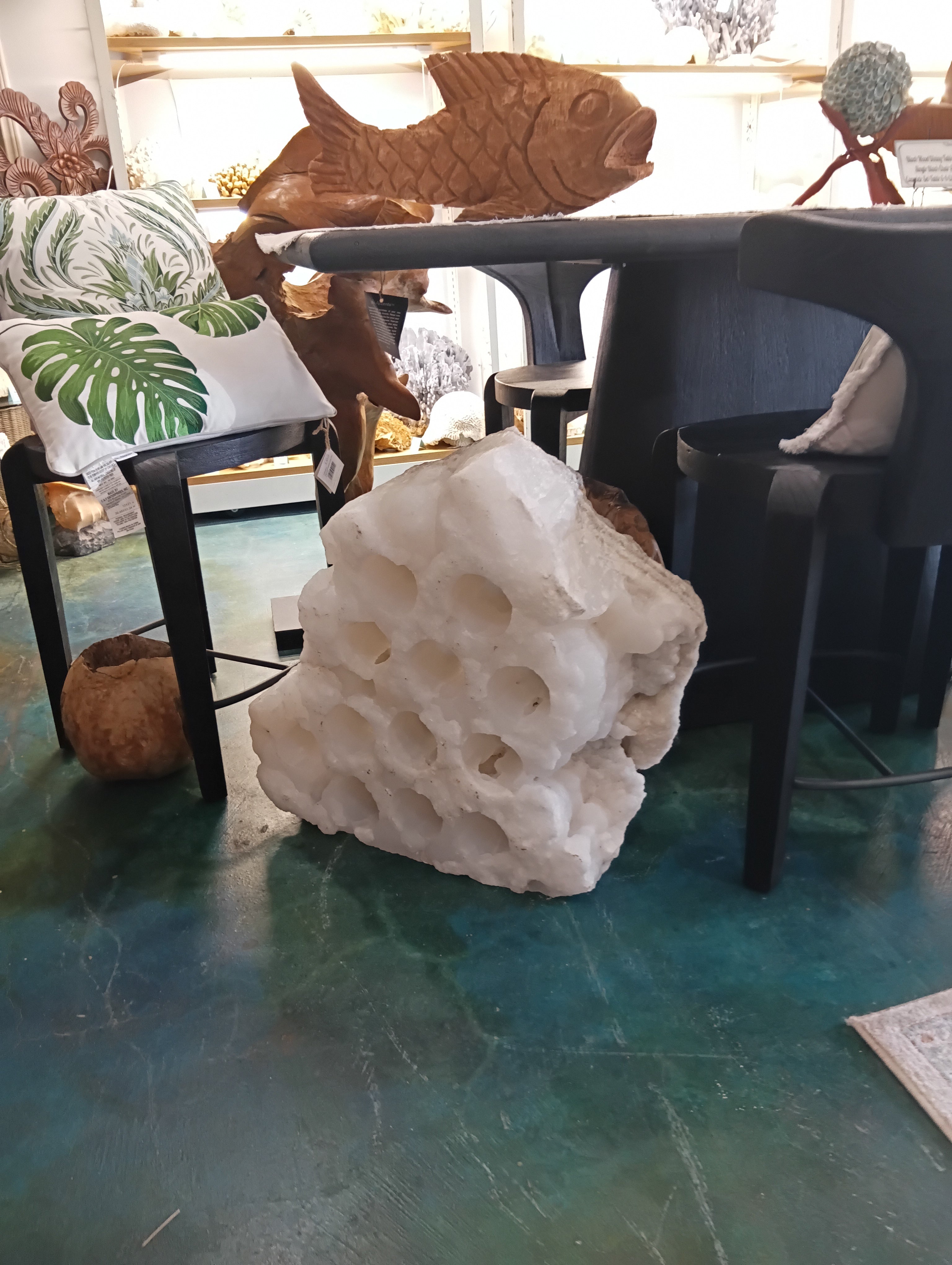 Bring coastal refinement and natural artistry into your space with this stunning onyx wine holder—a functional piece of art.