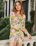 Cute and comfy, these pajama shorts are made for cozy movie nights, comfortable sleeping, and slow Lowcountry Sundays. Made with super soft knit fabric, these shorts have just the right amount of stretch, ensuring you’ll never want to take them off! Adorned with a playful pink banana leaf pattern, these comfy sleeper sets also make for great gifting.