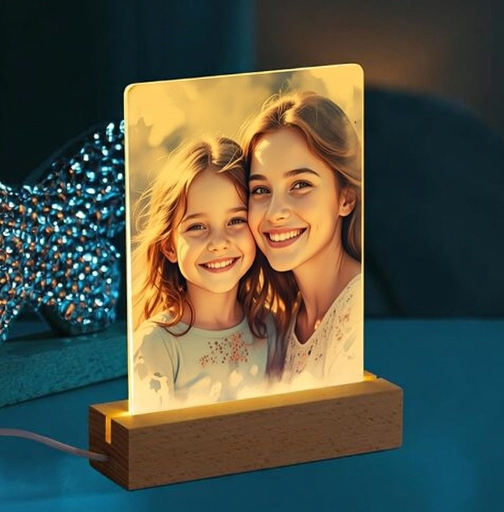 Turn a favorite memory into a warm, glowing keepsake with our Personalized Acrylic Photo Light Stand from The Texas Gift Company. Simply upload your 5x7 photo, and we’ll professionally print it directly onto a crystal-clear acrylic panel, creating a stunning illuminated display that’s both a photo holder and a soft night light. Set into a smooth natural wood base with built-in LED lighting, this piece casts a gentle, ambient glow that brings photos to life without being harsh—perfect for bedrooms, nurseries, living spaces, or desks. Thoughtful, modern, and deeply personal, it makes a meaningful gift for anniversaries, birthdays, memorials, graduations, or “just because” moments, blending everyday function with heartfelt storytelling.