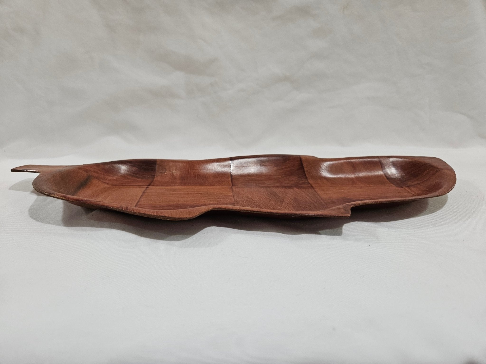 Loving Coastal Living Leaf Shaped Parquet Woven Wood Dish