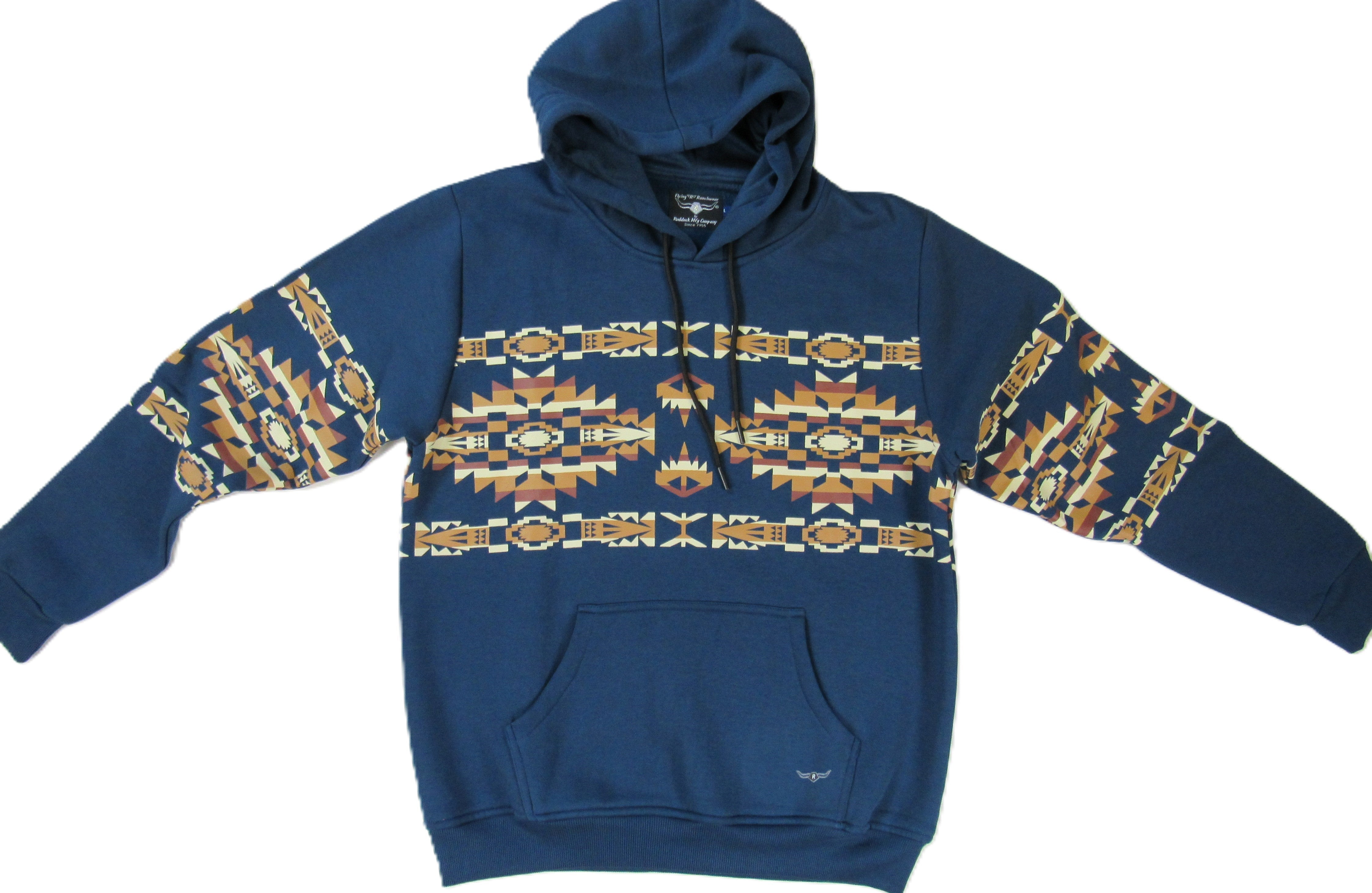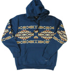 We've taken some of the best looking elements of retro southwest prints and combined them with a modern soft hoodie. The first time you wear it, you'll agree there's nothing missing. It's beefy, very soft, and the updated southwest border print is right on point and pops out against the teal blue fleece. 100% Cotton with front pouch hand warmers. Imported