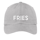This cap is your perfect companion for fries-loving adventures, featuring soft, textured letters on a stylish pigment-dyed canvas. It's more than just a cap; it's an invitation to celebrate the simple joys of life, whether you're at a food festival or lounging with friends.