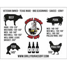 We get it, you're old. Take the stress out of remembering the proper temperature to cook your meat with the Grill Your Ass Off temperature chart! The Meat Temperature Chart is magnetic for easy placement in or out of the house and also works as a great gift!