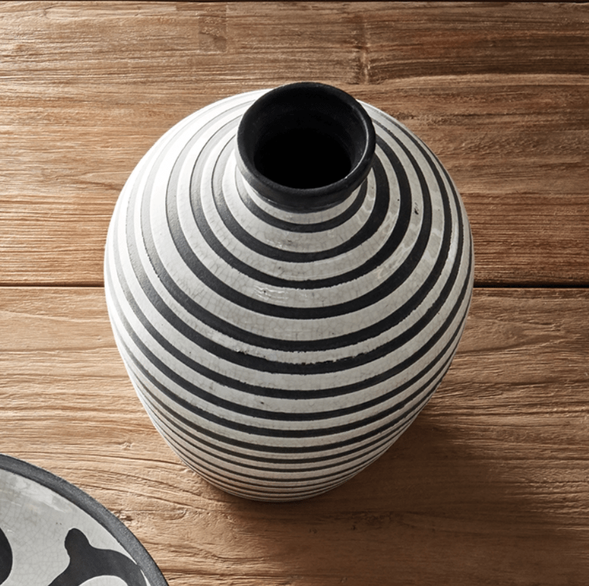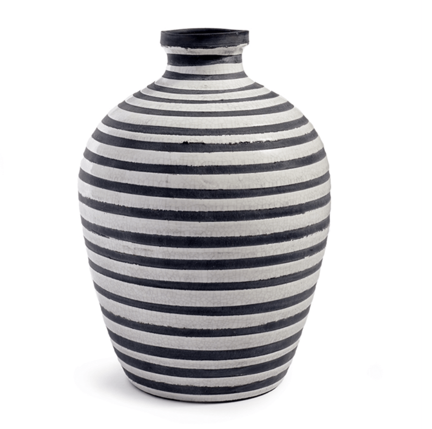 Infuse your space with striking elegance using the Mombasa Stripes Bottle. With bold graphic designs and a contemporary tribal feel, this accent piece captures attention and adds character to any room. Available in two sizes, it’s a versatile choice for your home décor that complements a variety of styles.