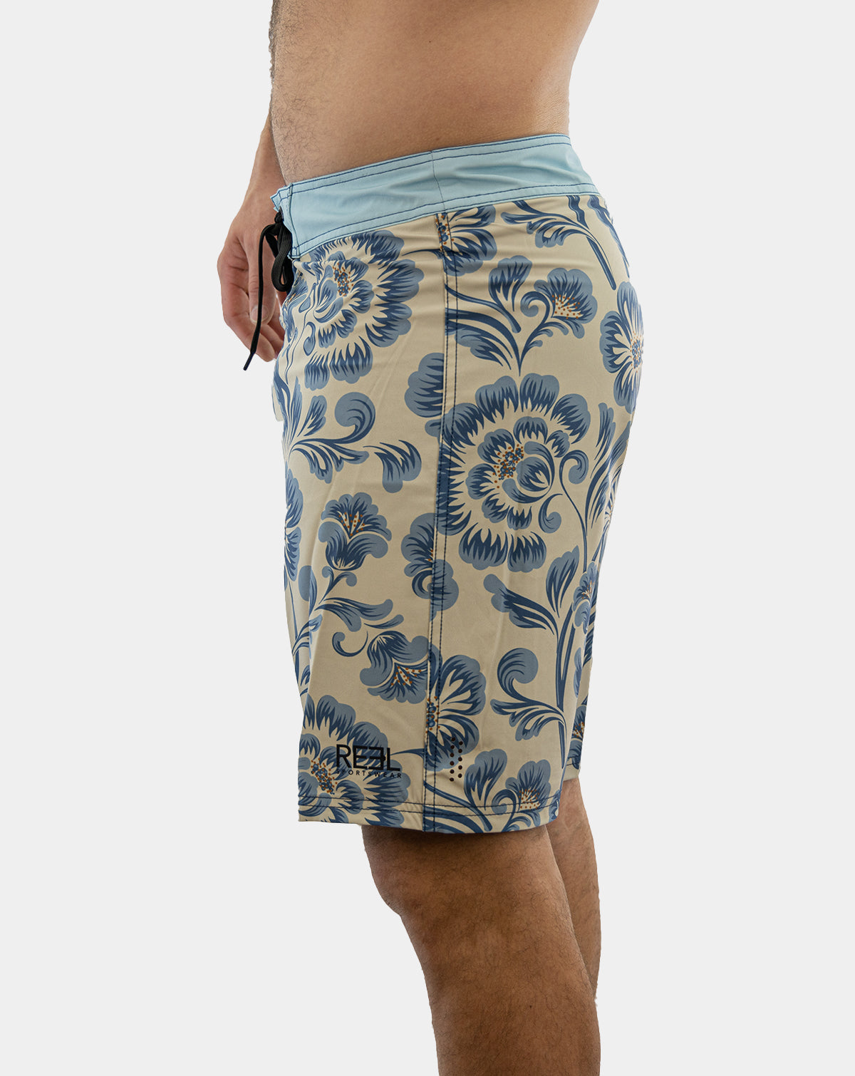 The Sturgill Boardshorts are a work of art, just like the waves you'll conquer in them. With a bold floral print in blue and antique white, these boardshorts are designed to stand out from the crowd. But don't be fooled by their stylish look - they're built for performance. The 4-way stretch fabric with UPF30+ provides freedom of movement, while the quick-dry and anti-microbial properties ensure you stay comfortable all day. The fixed waist and double-bonded butt seam provide added strength, so you can shred with confidence. And when you need to store your essentials, the side zipper pocket and side patch pockets have got you covered. Whether you're hitting the waves or just hanging out on the beach, the Sturgill Boardshorts are the perfect combination of style and functionality.