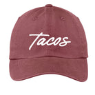 Elevate your everyday look with the Tacos Cursive Baseball Cap, featuring velvety-soft lettering on a beautifully pigment-dyed cap. This stylish accessory combines flair with functionality, making it the perfect companion for sunny Texas days.