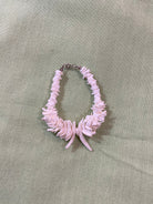 This stunning vintage lavender carved shell bracelet is a unique statement piece that embodies coastal elegance. The intricate design of stacked shell pieces creates a lightweight and comfortable accessory, perfect for daily wear or special occasions.
