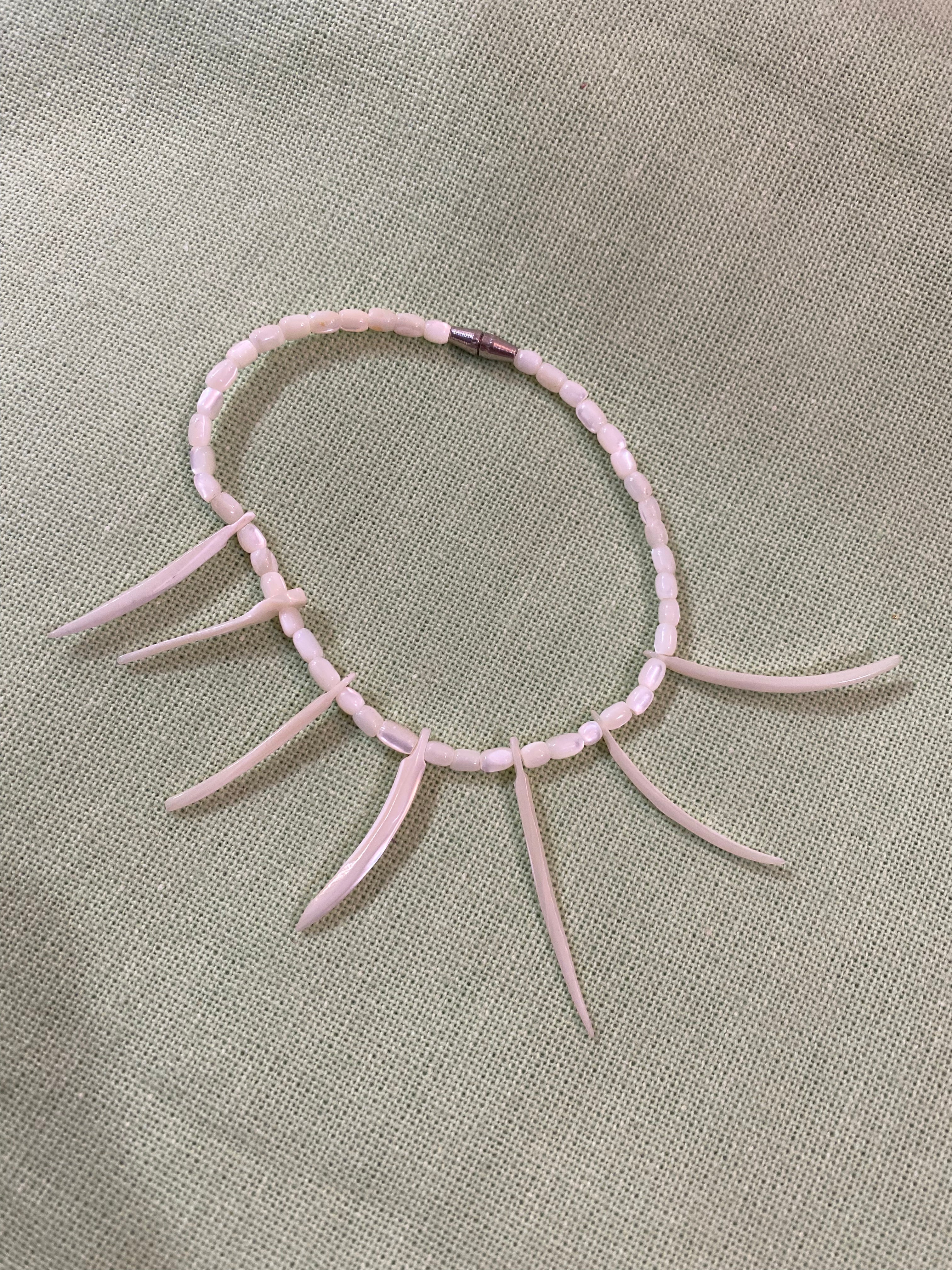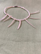 - Delicate Design: Features light pink carved shell spikes paired with small round beads for a sleek aesthetic.