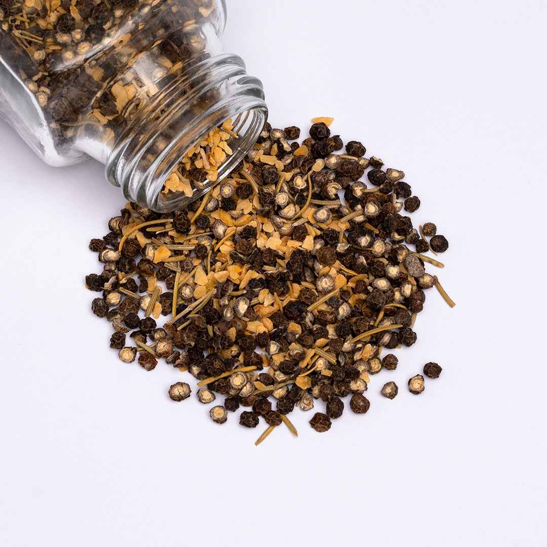 Experience bold flavors with Cowgirl Peppercorn. Made with cracked black peppercorn, dried garlic, and rosemary, this robust blend will take your cooking to the next level. Plus, the standard sizes comes with a grinder, so you can enjoy fresh flavor anytime! Spice up your kitchen today! This is an unsmoked version of our Cowboy Peppercorn.