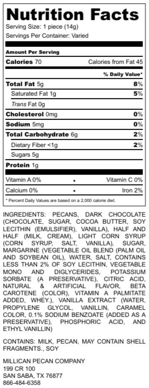 Whether you're treating yourself or searching for the perfect pecan gifts, these dark chocolate Caramillicans are sure to impress. Elegantly packaged, they make an ideal gift for any occasion. Shop now at our pecan store and enjoy the finest pecan candy available!