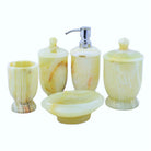 Crafted from one of the most sought after translucent Pistachio Onyx, this Cotton Jar / Bathroom Canister has been handcrafted and polished to perfection. Other items of this bathroom accessories collection are also available here individually and as sets. A subtle yet stylish statement that will bring a chic and timeless touch to any bathroom, counter, or vanity. Transform your home into a paradise of texture, color, and beauty.Size: 4x7"