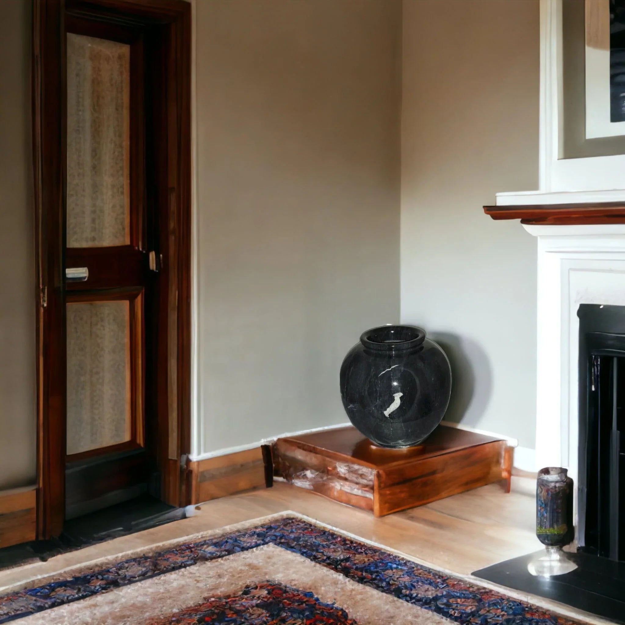 Achieve a stunning and sophisticated look with this 12" round decorative vase of black marble. Expertly crafted and polished to perfection with a lathe machine.