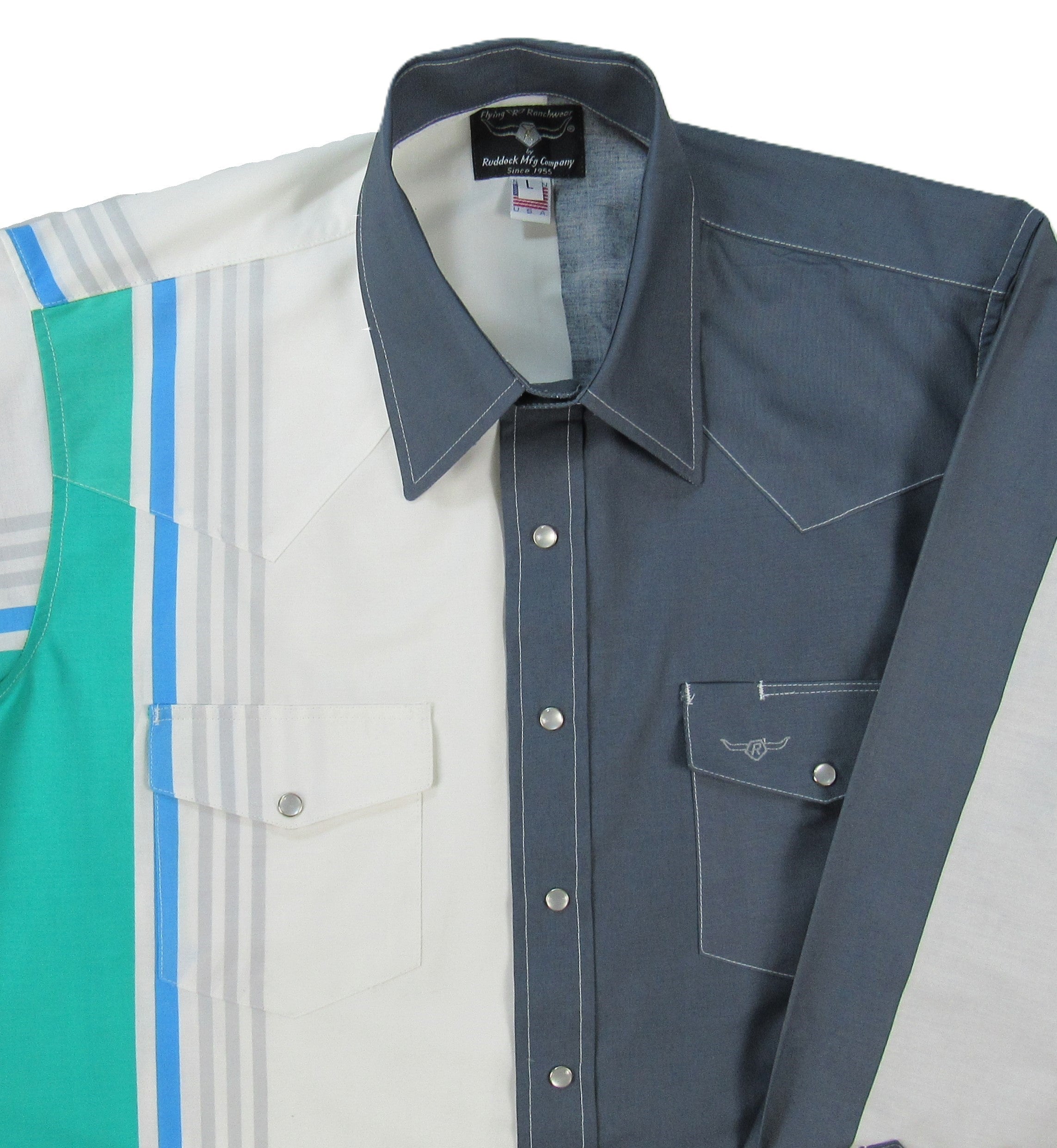 Finally, a retro stripe shirt you'll want to be seen in! Perfect for the office, cruise, or favorite watering hole. Engineered stripes in throwback colors of gray, teal, and pink are on point, plus it's cut in our classic western fit. Made in USA, 100% Cotton ~ Tall sizes