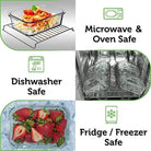 The glass bottoms are dishwasher, oven, microwave and freezer safe.