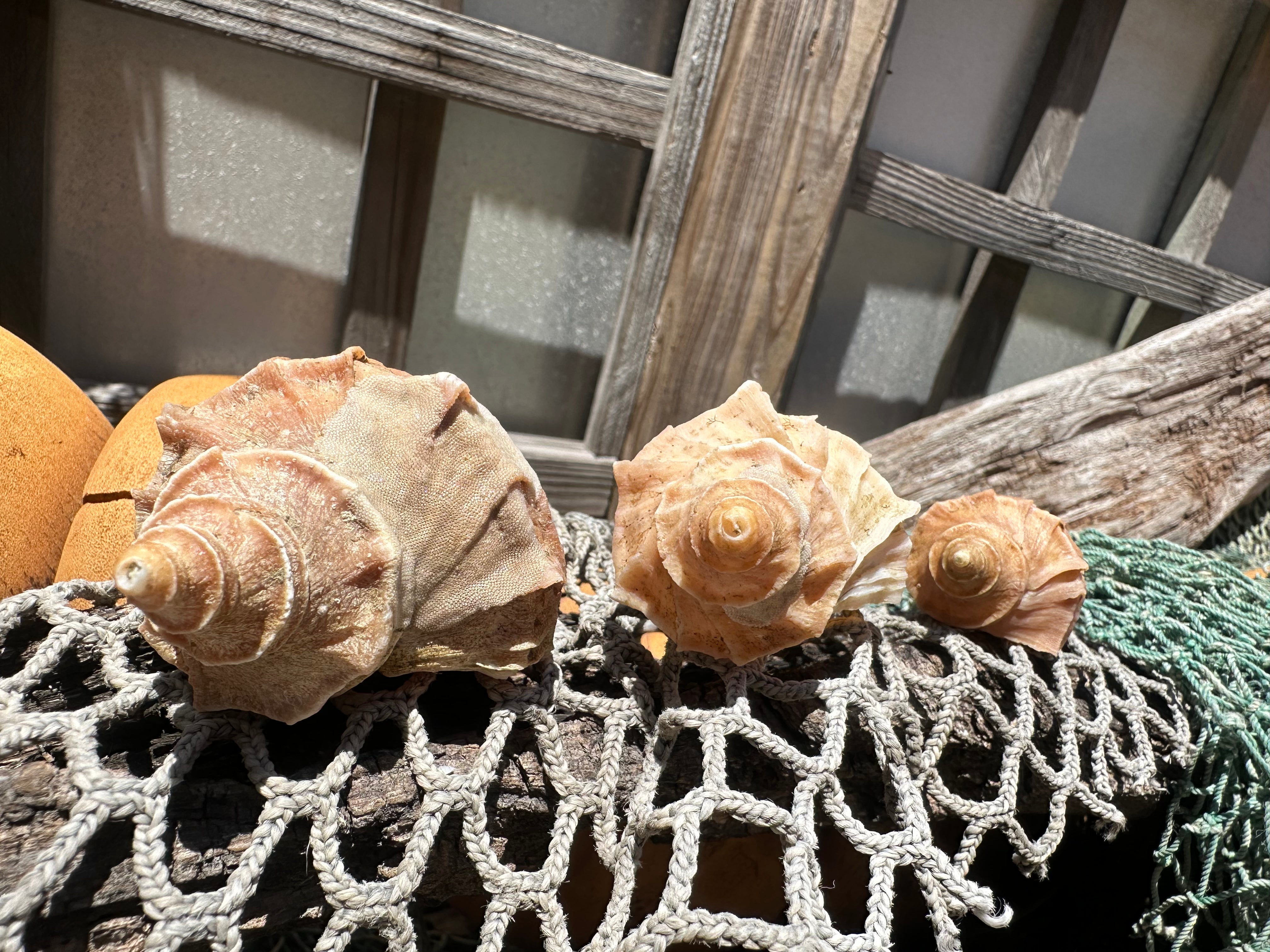 Bring the charm of the North Pacific into your home with this beautifully aged growth series of Ezo Neptune shells. This trio offers a fascinating look at the shell’s natural development. With textured ridges, gentle pink and cream tones, and warm tan apertures, these shells blend raw ocean beauty with timeless coastal appeal—perfect for displaying as a natural history accent or grouping in a curated coastal nook.