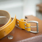 This sturdy saddle tan leather belt is crafted from thick oak bark tanned leather, promising a rich patina that enhances its character over time. Designed for durability, it effortlessly transitions from casual to formal settings.