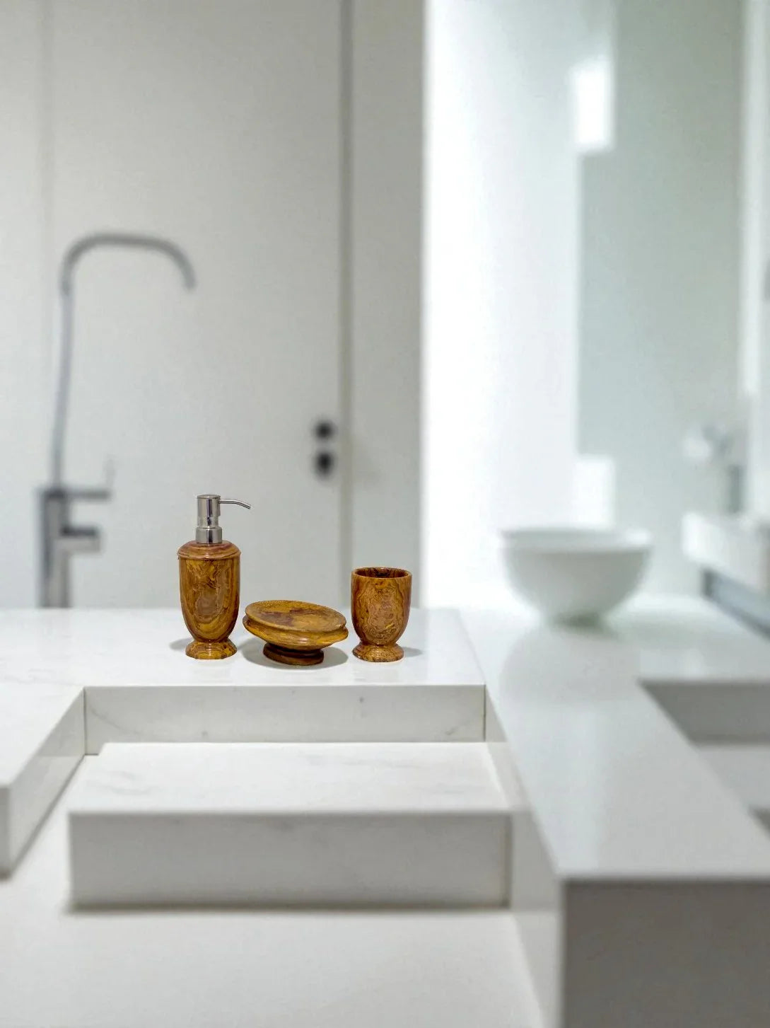 constructed with premium materials and skillfully crafted for superior longevity. Incorporate a timeless allure with the multi-brown onyx 3-piece accessory set. Be bold and make a statement with this luxurious bathroom set. Crafted with premium materials, it's designed to stay timelessly stylish for years to come. Make every moment count with the multi-brown onyx 3-piece accessory set.