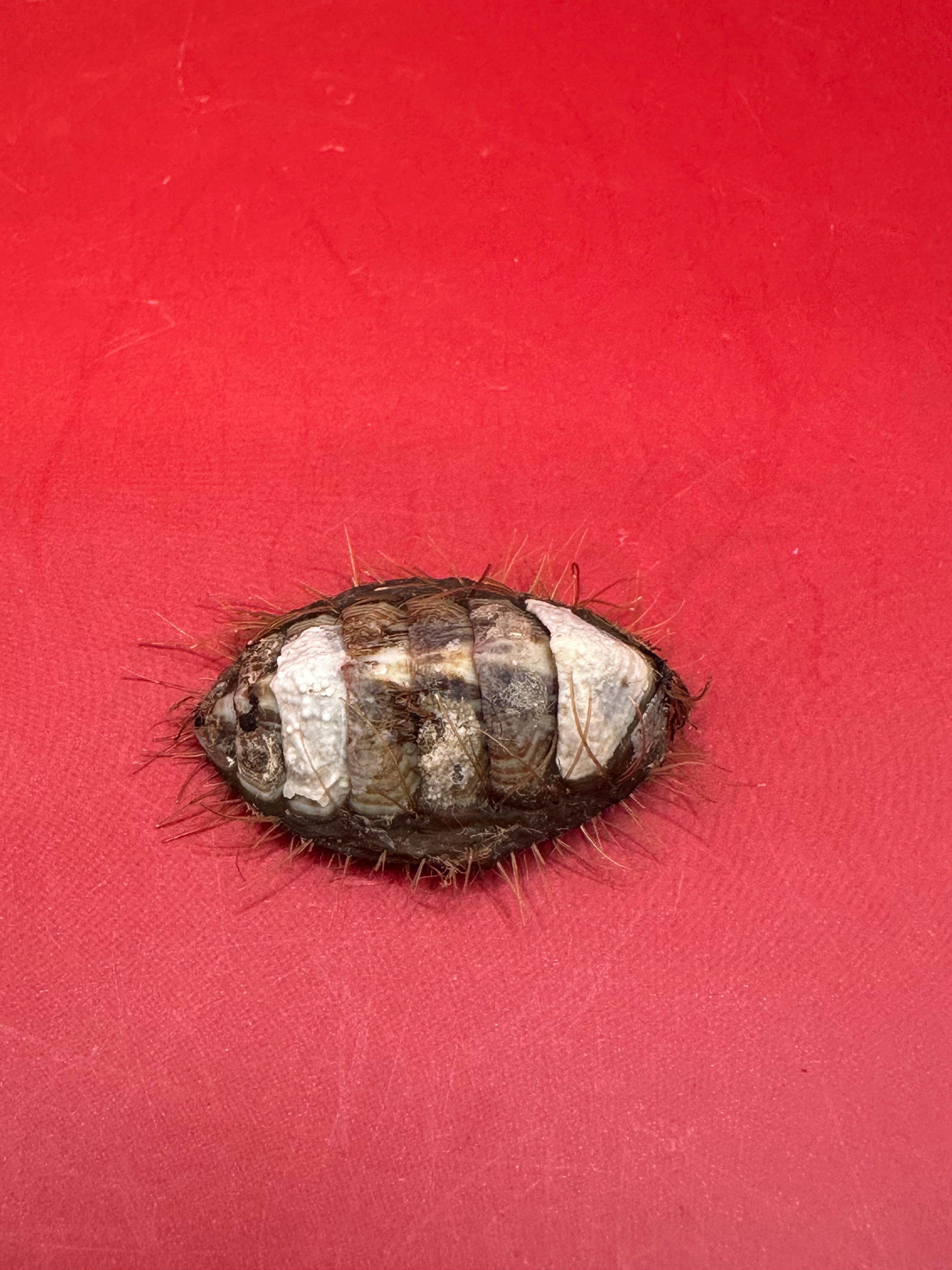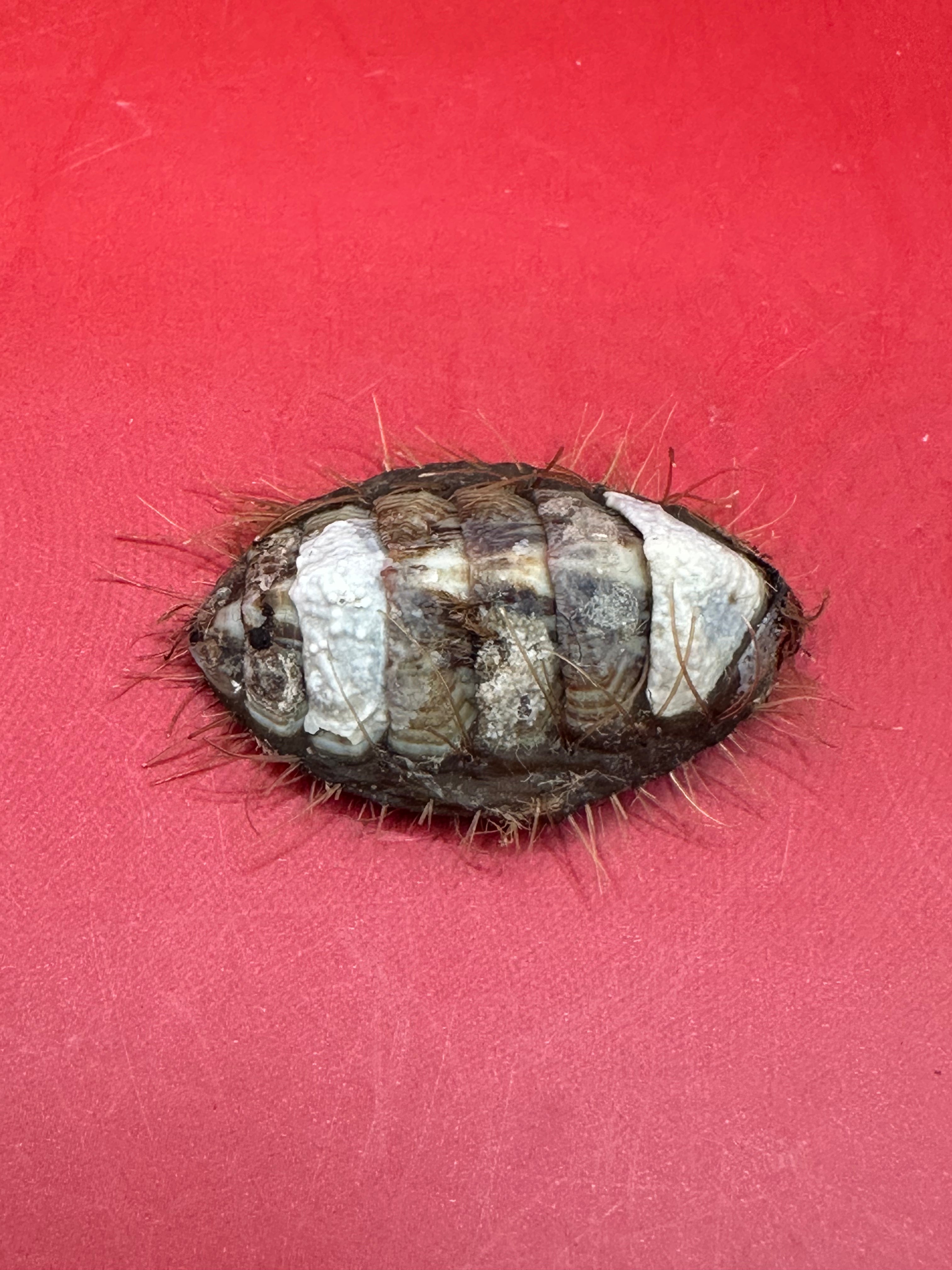 This preserved Plaxiphora aurata chiton is a rare and fascinating find from the cold southern waters of Patagonia. Collected live beneath rocks during extreme low tide at Punta María, Tierra del Fuego Province, Argentina, in November 2024, this specimen highlights the unique armored plates and natural “hairy” girdle characteristic of this species. A striking addition for collectors of marine curiosities, it embodies the rugged beauty of the South Atlantic coast.