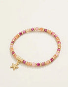 Bring a splash of vibrant elegance to your jewelry collection with the Calm Waters Stretch Bracelet in Ruby Sunstone. Featuring rich ruby sunstone beads accented with gleaming gold-plated details, this stretch bracelet exudes timeless beauty and charm. Its versatile design is perfect for layering or wearing solo as a statement piece. A delicate charm completes the look, making it a thoughtful gift or a stylish addition to your own accessory lineup.