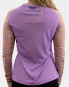 Bring a touch of elegance to your outdoor wardrobe with the Indi | Lavender performance long sleeve from Reel Sportswear. This stylish piece features a soft lavender hue and pastel wave-print sleeves, blending comfort with performance. It's perfect for those who appreciate a subtle yet chic look while enjoying time on the water.