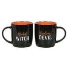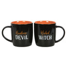 - Design: One mug features "Wicked Witch" and the other "Handsome Devil" in playful fonts