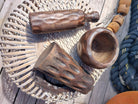 • Includes 3 unique pieces: stein, candle holder, and bowl
