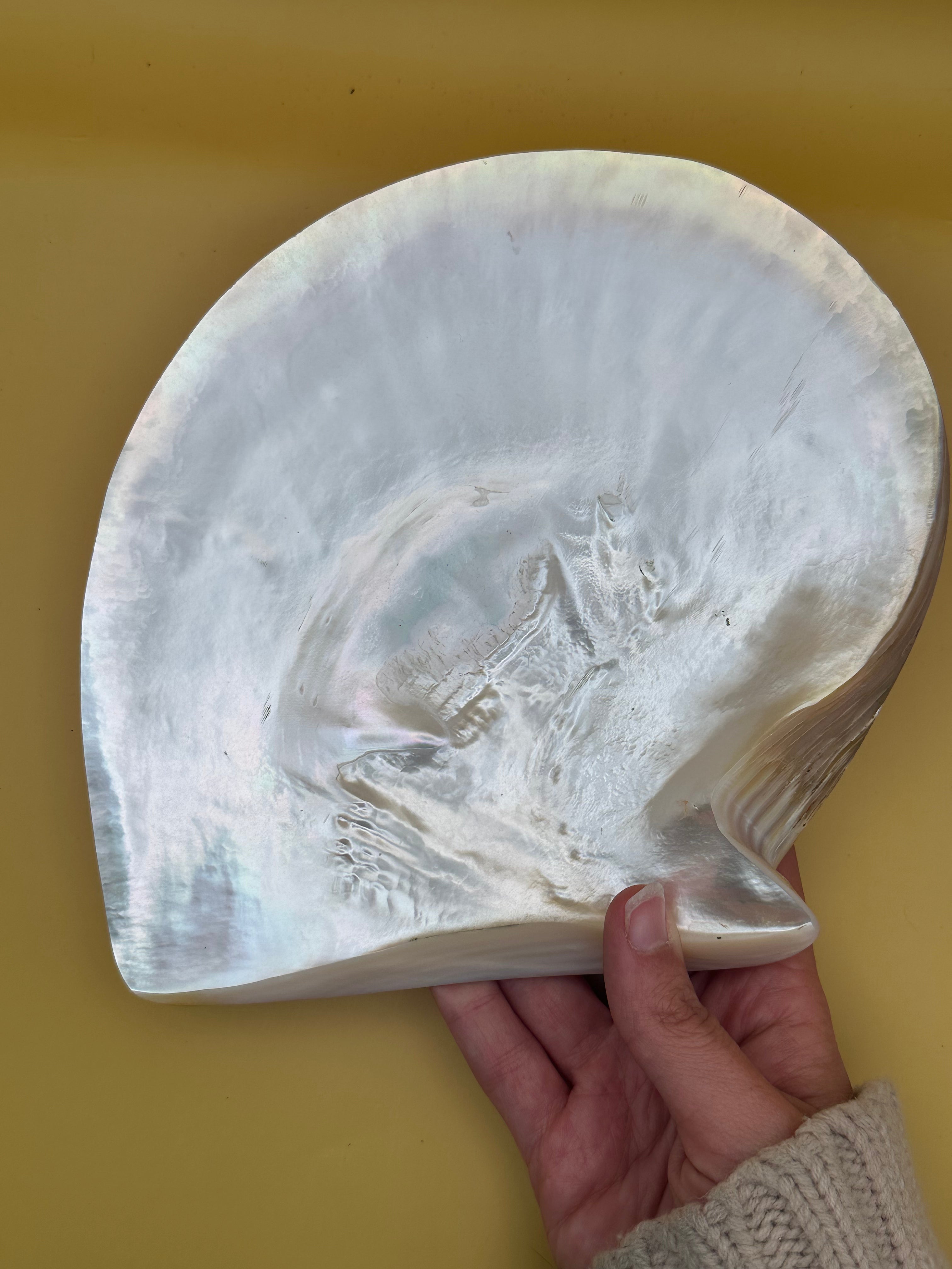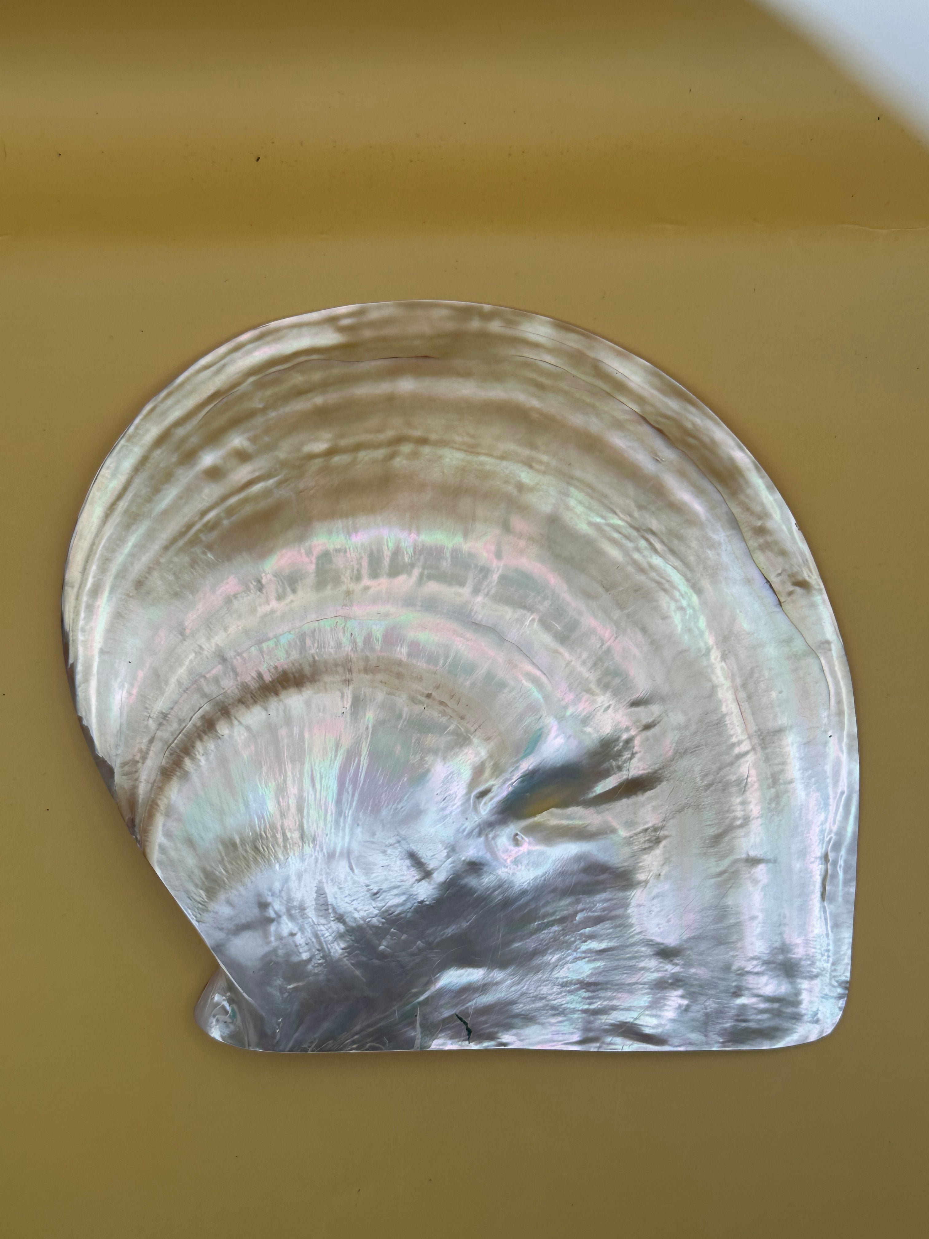 This extra-large polished Gold Mother of Pearl shell is a breathtaking display piece, radiating with shimmering hues of white, cream, and subtle gold. Its smooth finish and natural elegance make it a striking addition to any coastal-themed interior, effortlessly elevating your decor with a touch of luxury inspired by the sea.