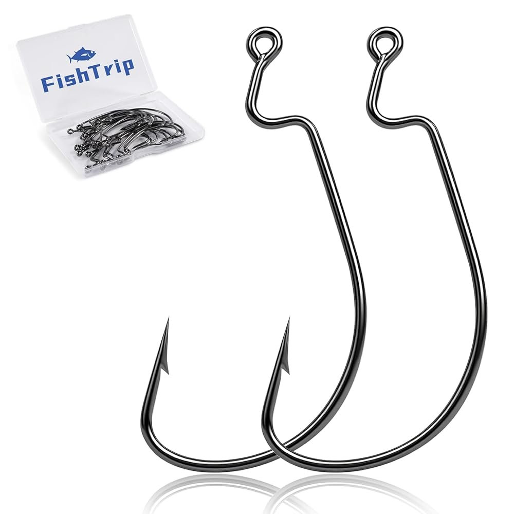 - 【Strength&Durability】FishTrip EWG Bass Fishing Hooks are made from premium high carbon steel for superior strength and durability. These hooks feature a sharp, off-center shank and closed-eye design ideal for a variety of rigs, and are corrosion-resistant to stay sharp and bend-resistant even after a day of fishing