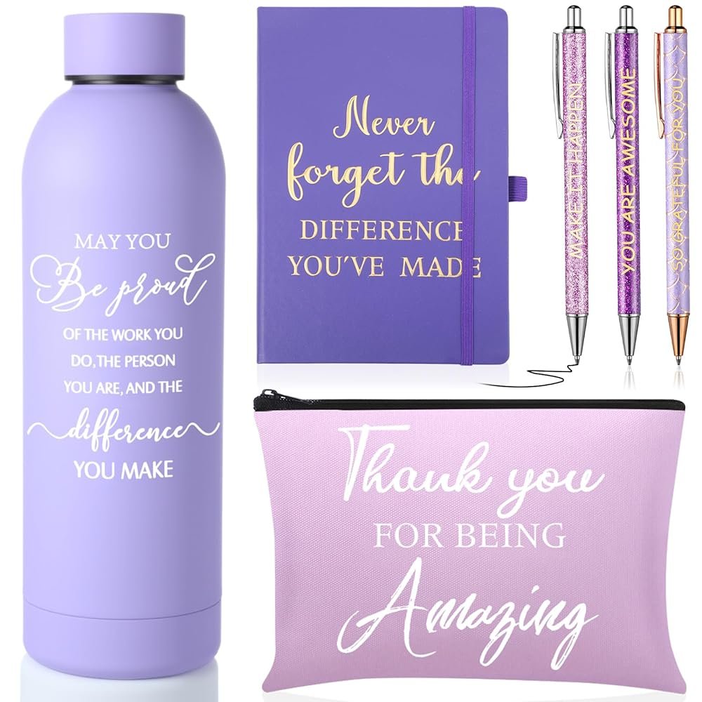 6 Pcs Employee Appreciation Gift Set 17 oz Stainless Steel Frosted Water Bottle Makeup Bag Notebook Ballpoint Pens Christmas Thank You Gift for Teacher Nurse Colleague Social…