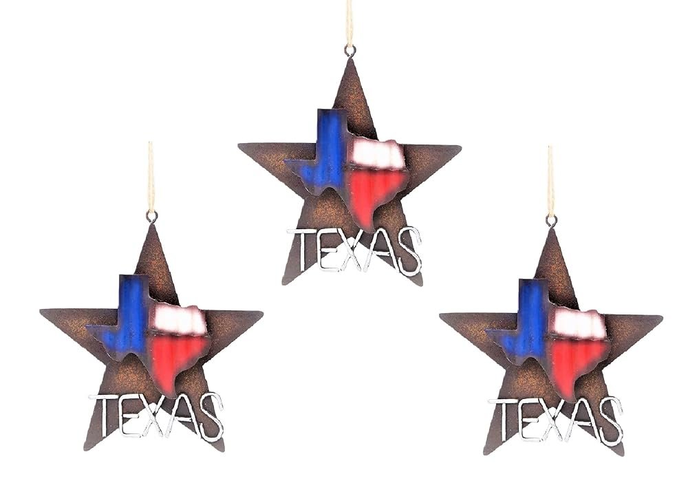 - Showcase Texan Pride with a Texas Star Ornament: This 3-piece set 3D Texas map on a metal star ornament are perfect for adding a touch of Texas decor to any room, wall, or Christmas tree. Ideal for western-style Christmas ornaments lovers.