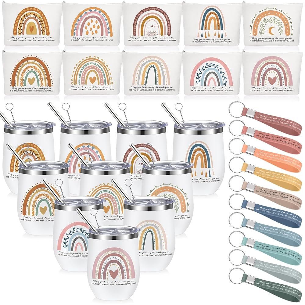 Bokon Set of 30 Employee Appreciation Gifts 12 oz May You Be Proud Sign Stainless Steel Tumbler Rainbow Sign Makeup Bags and Silicone Keychains Inspirational Gifts Thank You Gift