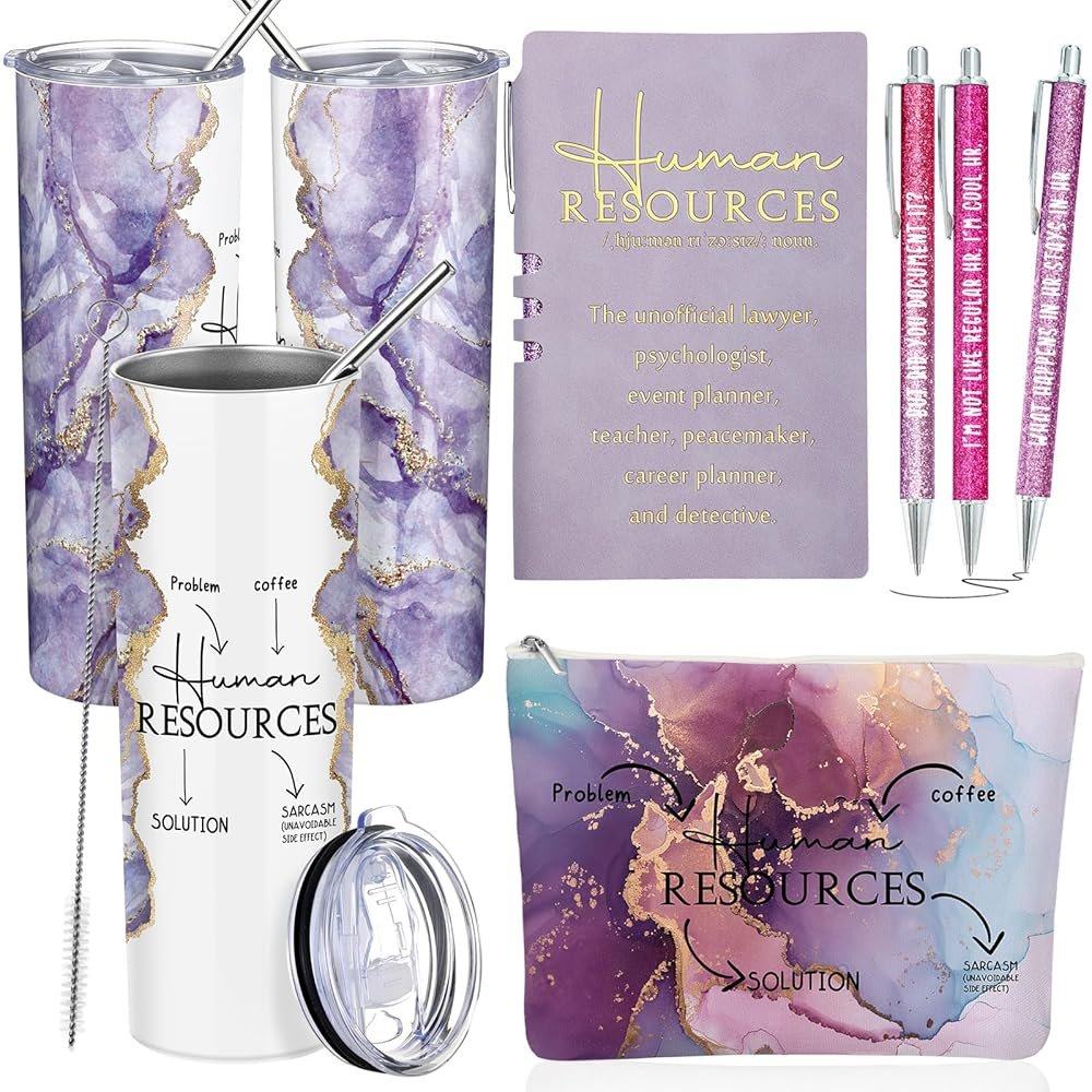 Domensi Set of 6 Human Resources Gift for Women Employee Appreciation 20 oz Marble Sign Tumbler Makeup Bag A6 Notepad and Ballpoints for HR Professionals Day Office Director...