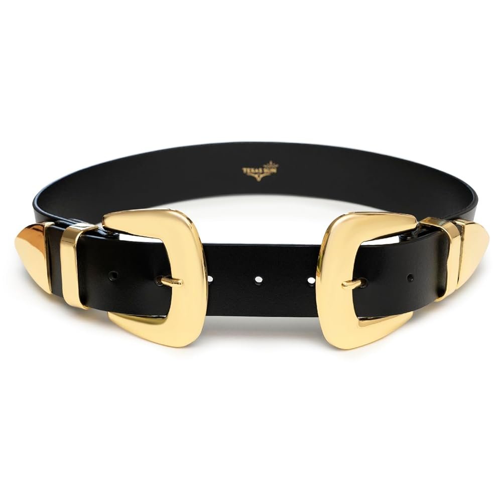 - Premium Leather with Vintage Accents: Crafted from 100% genuine leather, this belt features vintage-inspired details and a bold double buckle design—ideal for lovers of western belts for women with a cowgirl spin.