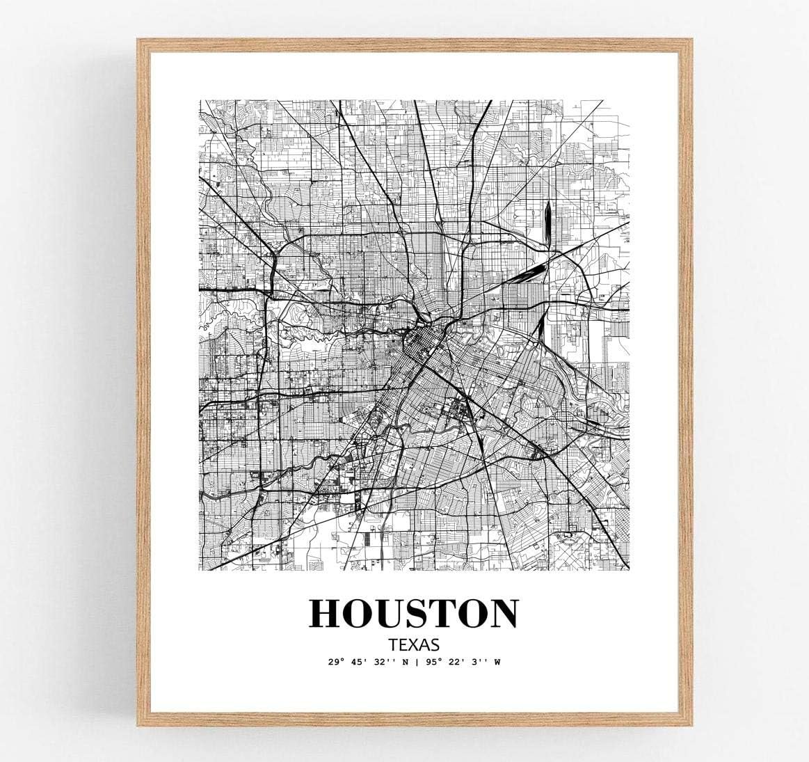 Eleville 11X14 Unframed Houston Texas City View Abstract Road Modern Map Art Print Poster Wall Office Home Decor Minimalist Line Art Hometown Housewarming wgn348