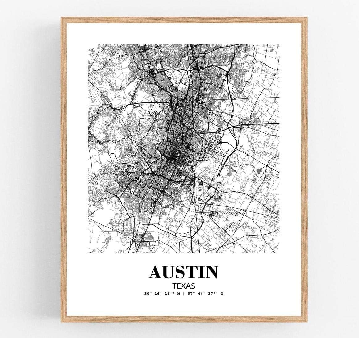 Eleville 8X10 Unframed Austin Texas United States City View Abstract Road Modern Map Art Print Poster Wall Office Home Decor Minimalist Line Art Hometown Housewarming wgn547