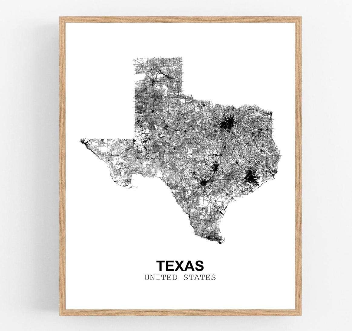 Eleville 8X10 Unframed Texas United States Country View Abstract Road Modern Map Art Print Poster Wall Office Home Decor Minimalist Line Art Hometown Housewarming wgn200