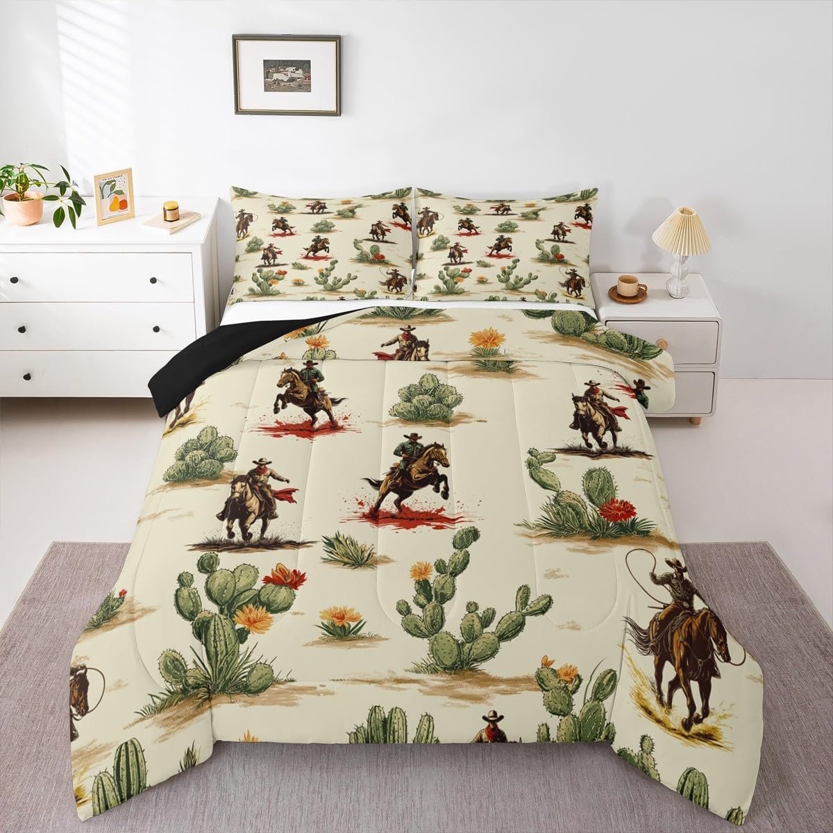 Erosebridal 3 Pieces Western Cowboy Comforter Set, Rustic Cowboy Cow Longhorn Horse Print Full Size Bedding Sets for Boys Girls Adults, Western Texas Style Bed Comforter Set – 1…