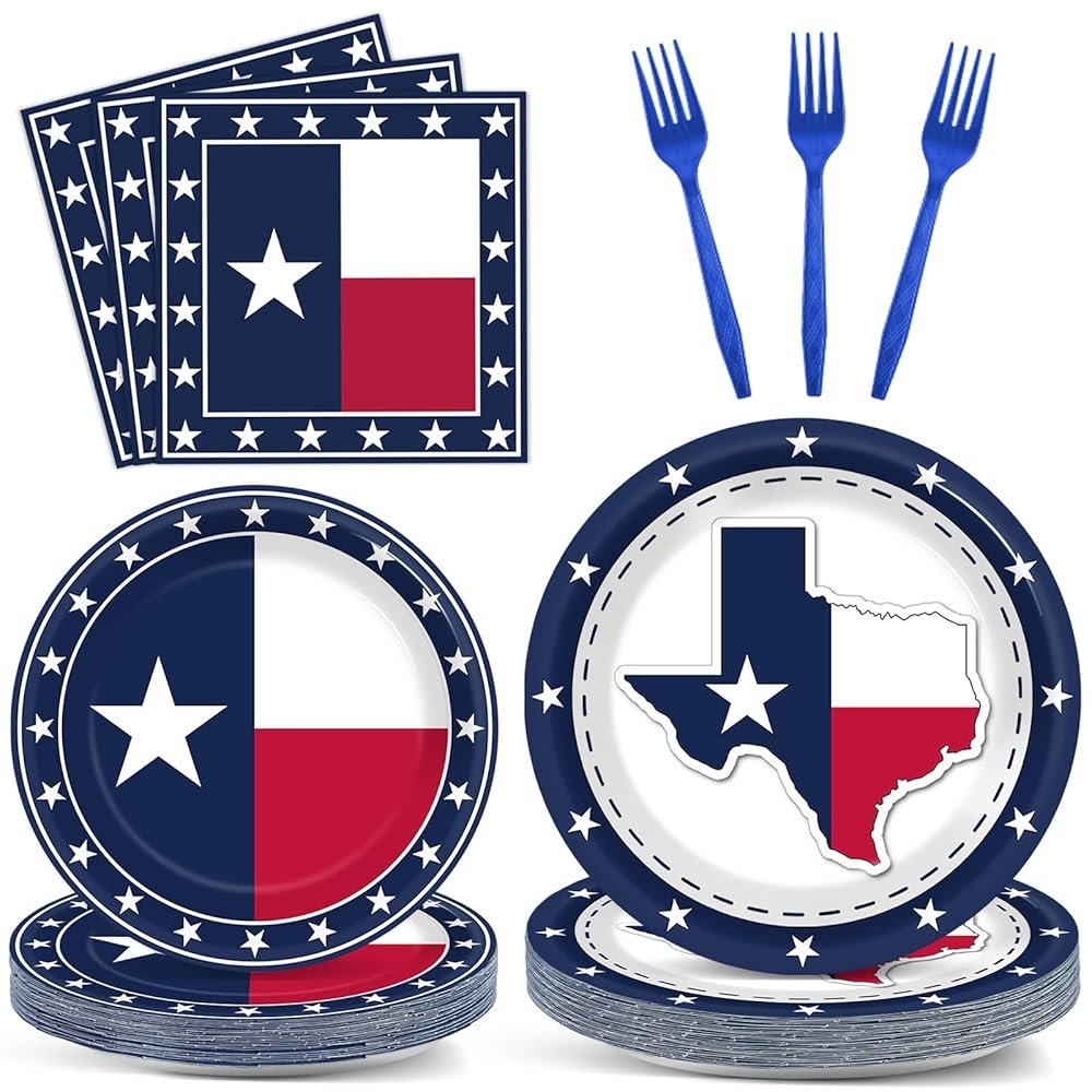 • Eye-catching design: The Texas state flag plates and napkins showcase vibrant blue, white, and red colors, featuring striking patterns of the Texas state flag and map. These eye-catching designs will enhance your table setting and create a festive atmosphere, making your gathering truly memorable for all guests.