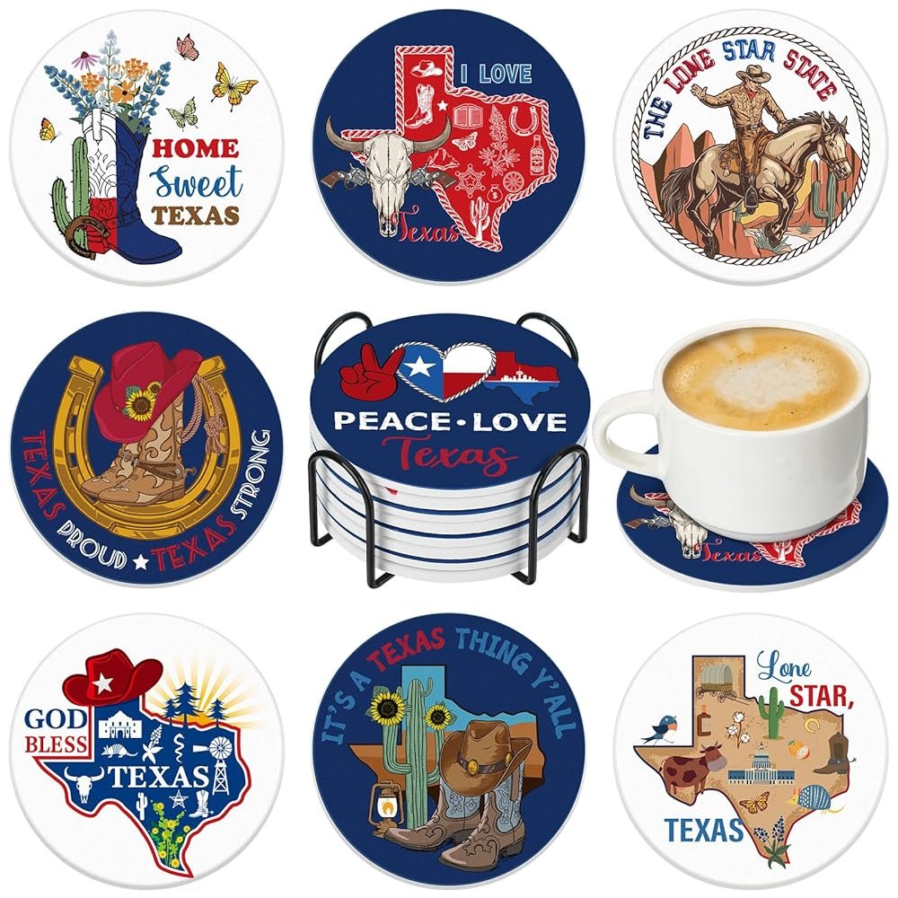 - Texas Souvenirs and Christmas Gift: our coaster set includes 8 distinctly designed ceramic coasters, makes for a beautifully rustic addition to your home, a classic Texas souvenir and ideal Christmas gift