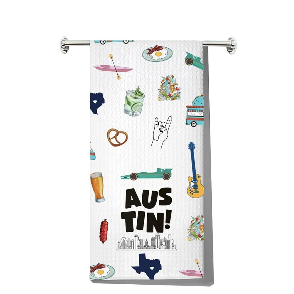 JNIAP Austin Texas Kitchen Towels Austin Texas Kitchen Gifts Texas Bluebonnet Dish Towel ATX Dish Towels (Austin kt)