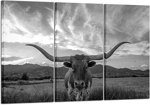 Large Modern Longhorn Canvas Art Set for Home & Office Decor