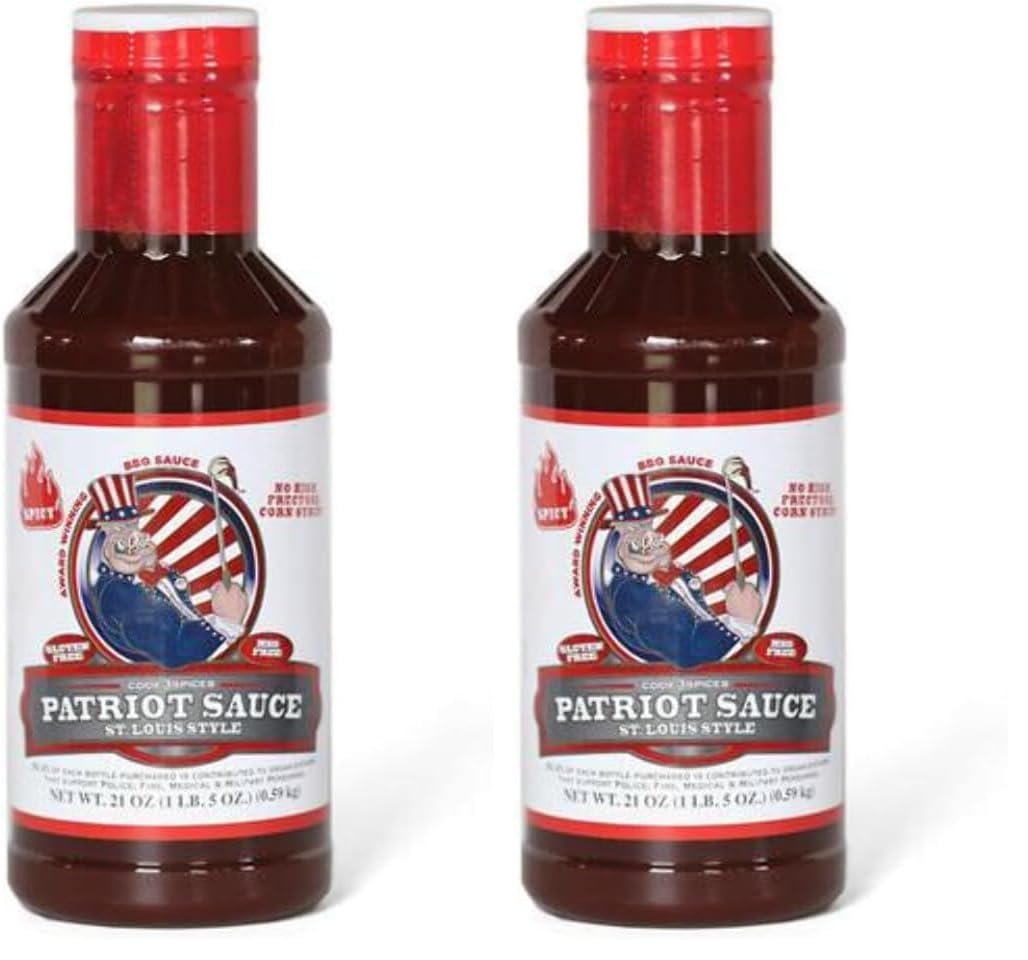 Patriot Spicy BBQ Sauce, 21 Ounce Bottle, Original St. Louis Competition Style Barbecue Flavor, Made Without High Fructose Corn Syrup, Gluten-Free, No MSG (Pack of 2)