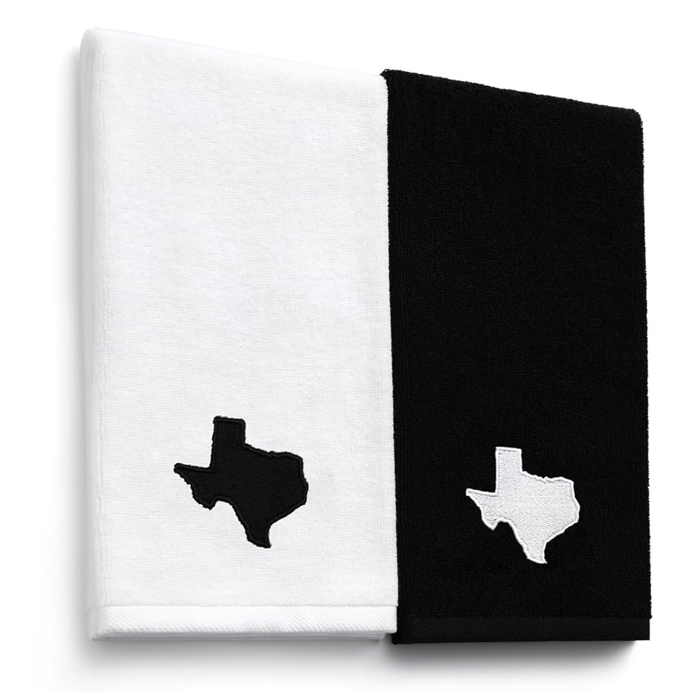 • Texas Themed Towels: this Texas themed towel set includes two towels; One with a white background and black embroidered Texas pattern, and one with a black background and white embroidered Texas pattern; The classic Texas outline design shows the pride and love of Texans, making it a great choice for personal use or as a gift
