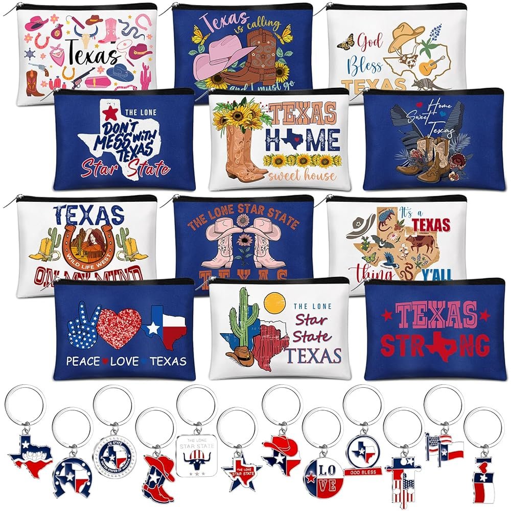- Rich Product Combination: you will receive 12 Texas cosmetic bags and 12 Texas key chains to meet different needs; This rich combination of quantities makes these products ideal for gift giving or personal use, suitable for a variety of occasions and people