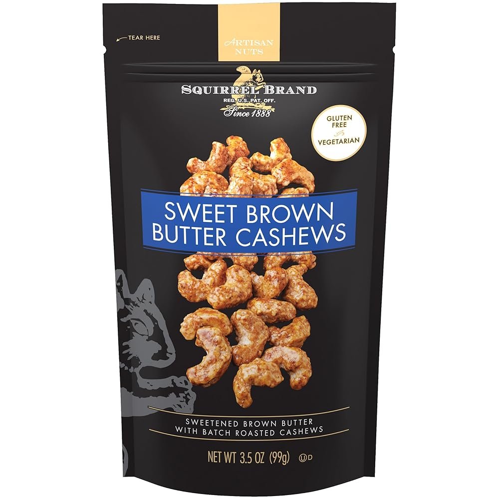- Contains 1- 3.5 Ounce resealable stand up bag of Squirrel Brand Sweet Brown Butter Cashews
